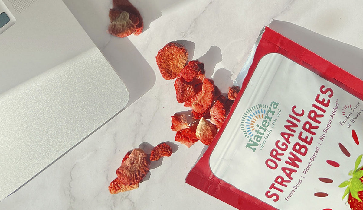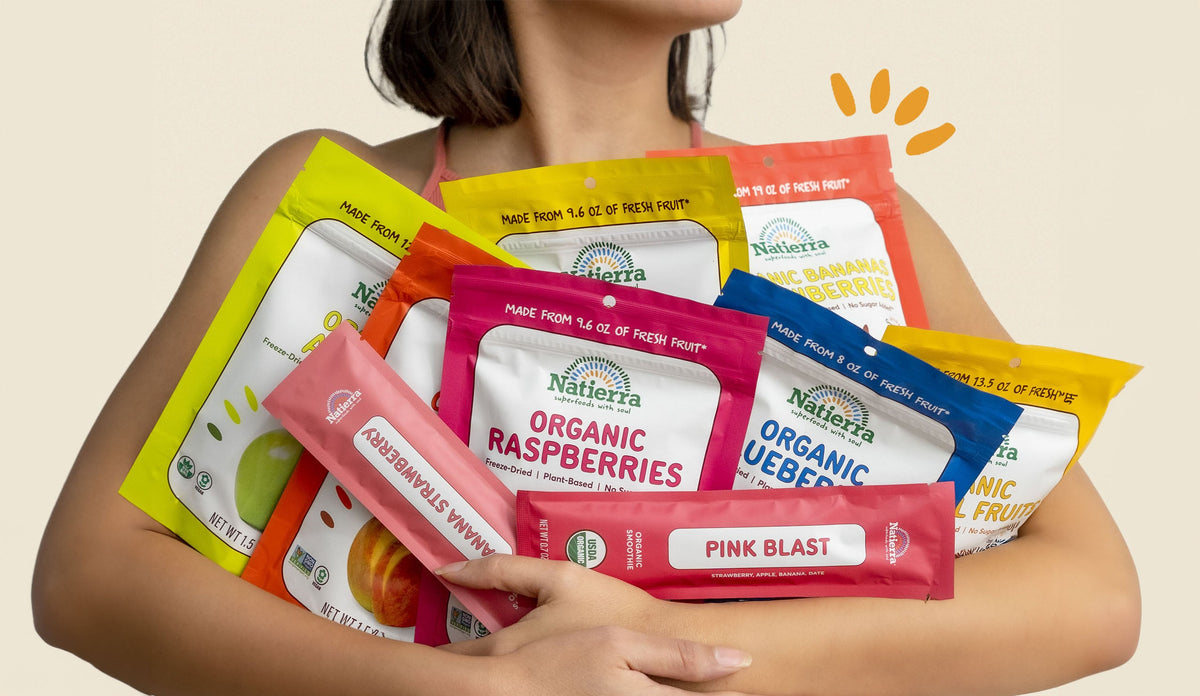 Our organic smoothies and freeze-dried snacks are crafted through a gentle freeze-drying process that removes water while locking in nutrients, flavor, and natural sweetness. This method also extends their shelf life without the need for additives or preservatives. Enjoy plant-based, organic ingredients that are lightweight, portable, and ready whenever you are.